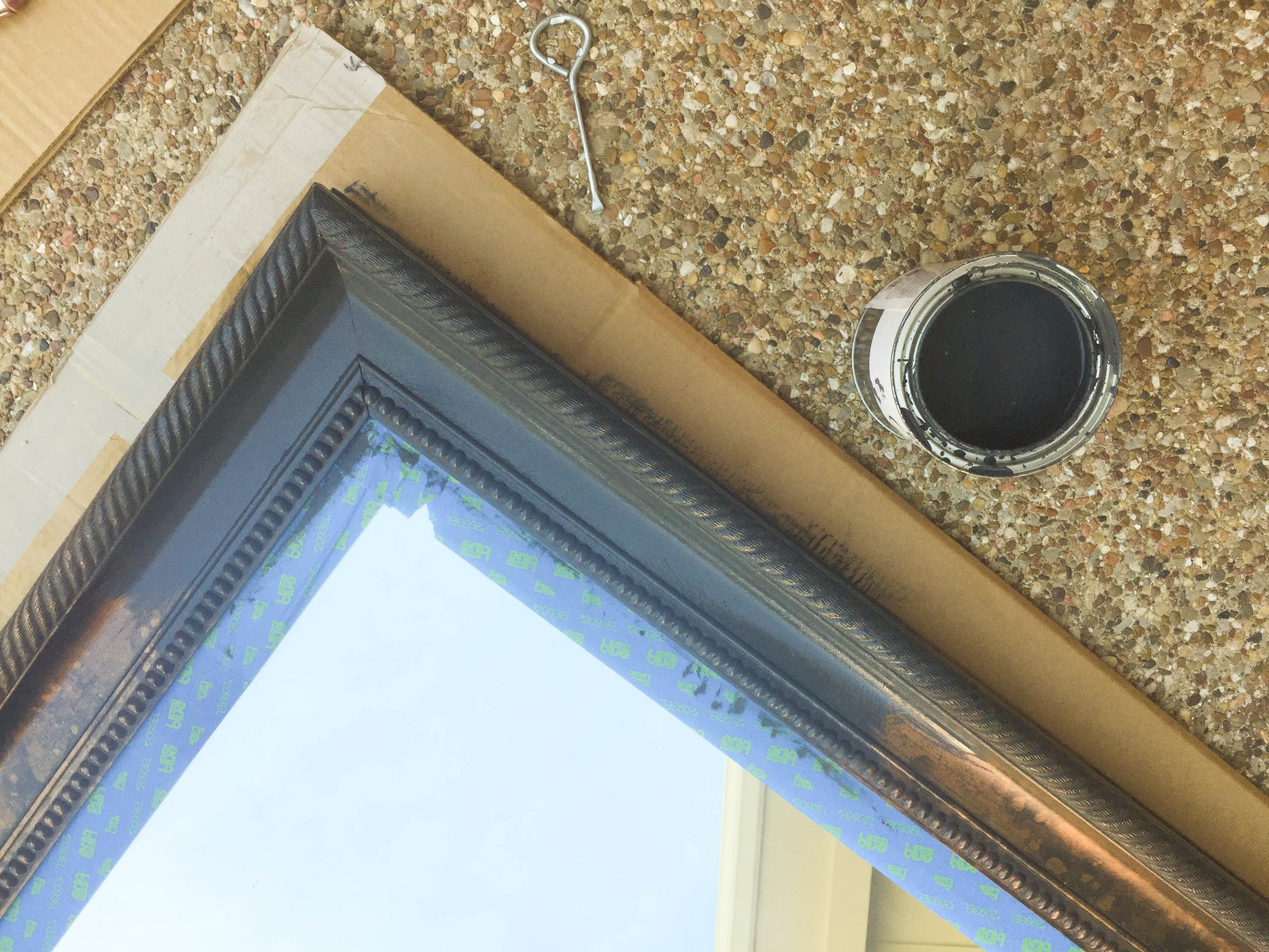 I painted the mirror with the same chalk paint I used on the cabinets and then added a light layer of Rub-N-Buff in antique white with a rough paint brush.