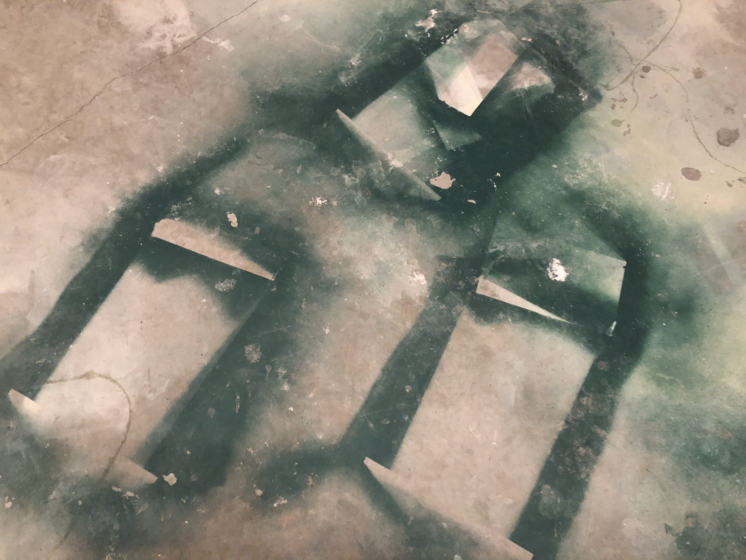 - Your slab might not be pretty and you might have to paint it instead of just sealing it or staining it. My original plan was to seal the concrete slab, so I was surprised to see green paint, cracks, and a patch job on our slab. I had envisioned a nice pretty smooth surface, but surprise! Needless to say, it wasn’t pretty. We had to pivot and come up with a new plan. So I quickly began researching how to paint concrete floors.
