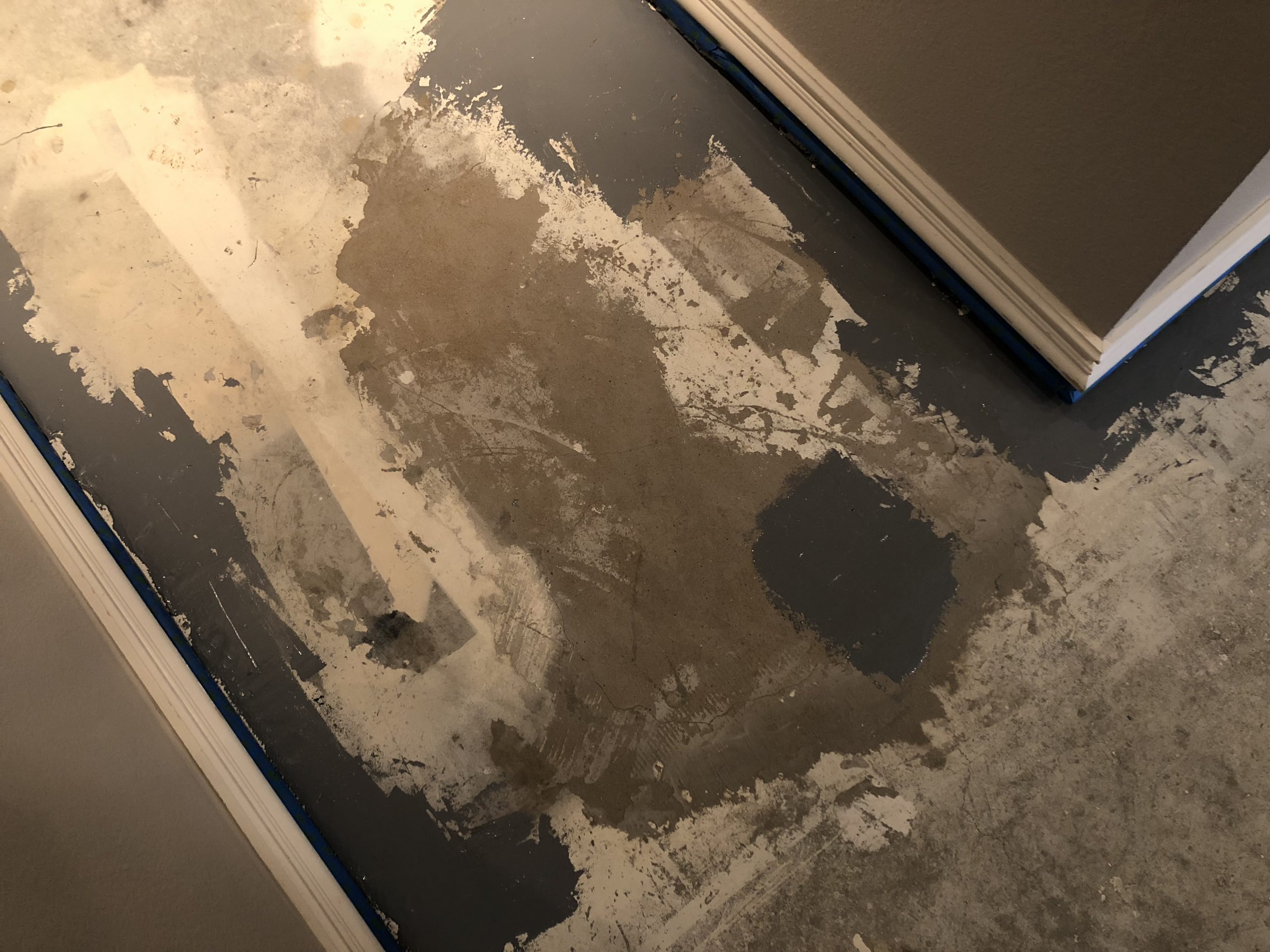 We have been in our house for about seven years and this is the first change we have made to the master bedroom. It seems like that is always the last room to get any attention. Painting the concrete floor was just one of the parts in a larger home improvement DIY. The entire room was the same color, beige, and so was our furniture. The lack of contrast really drove me crazy. A person can only take so much beige. I came up with a plan to get my contrast by painting black crown molding which you can see here. Next, I had to deal with the floor.