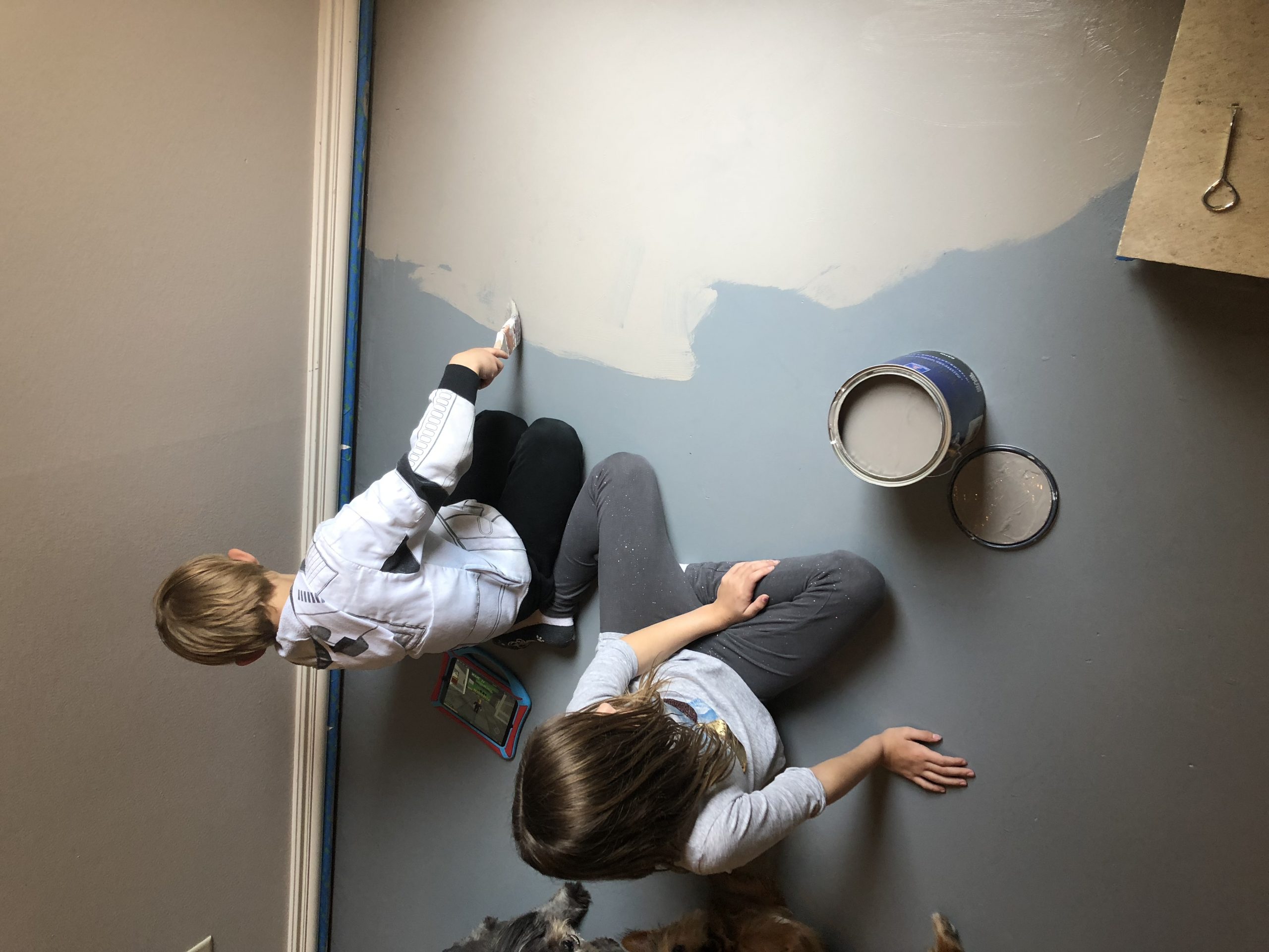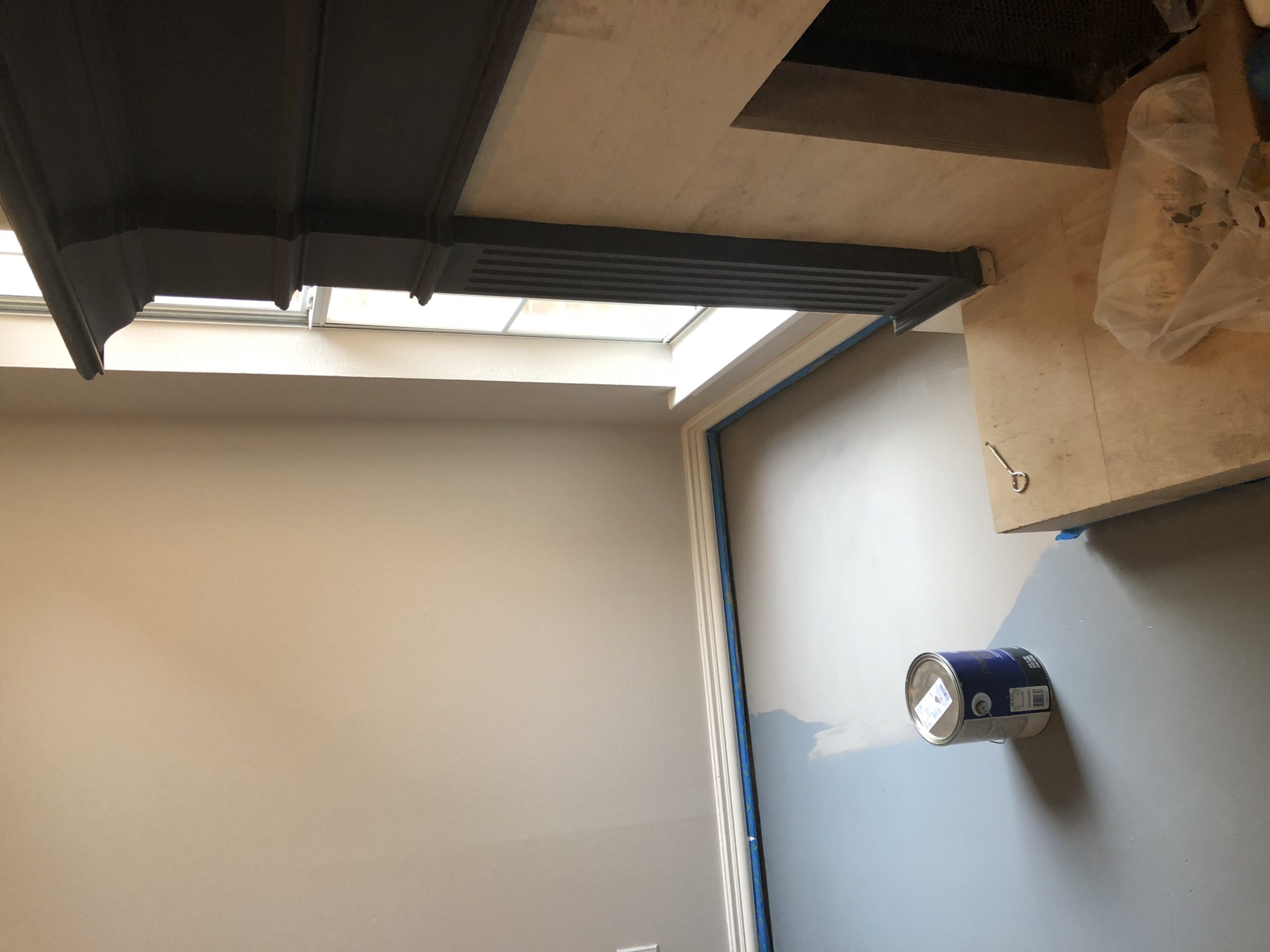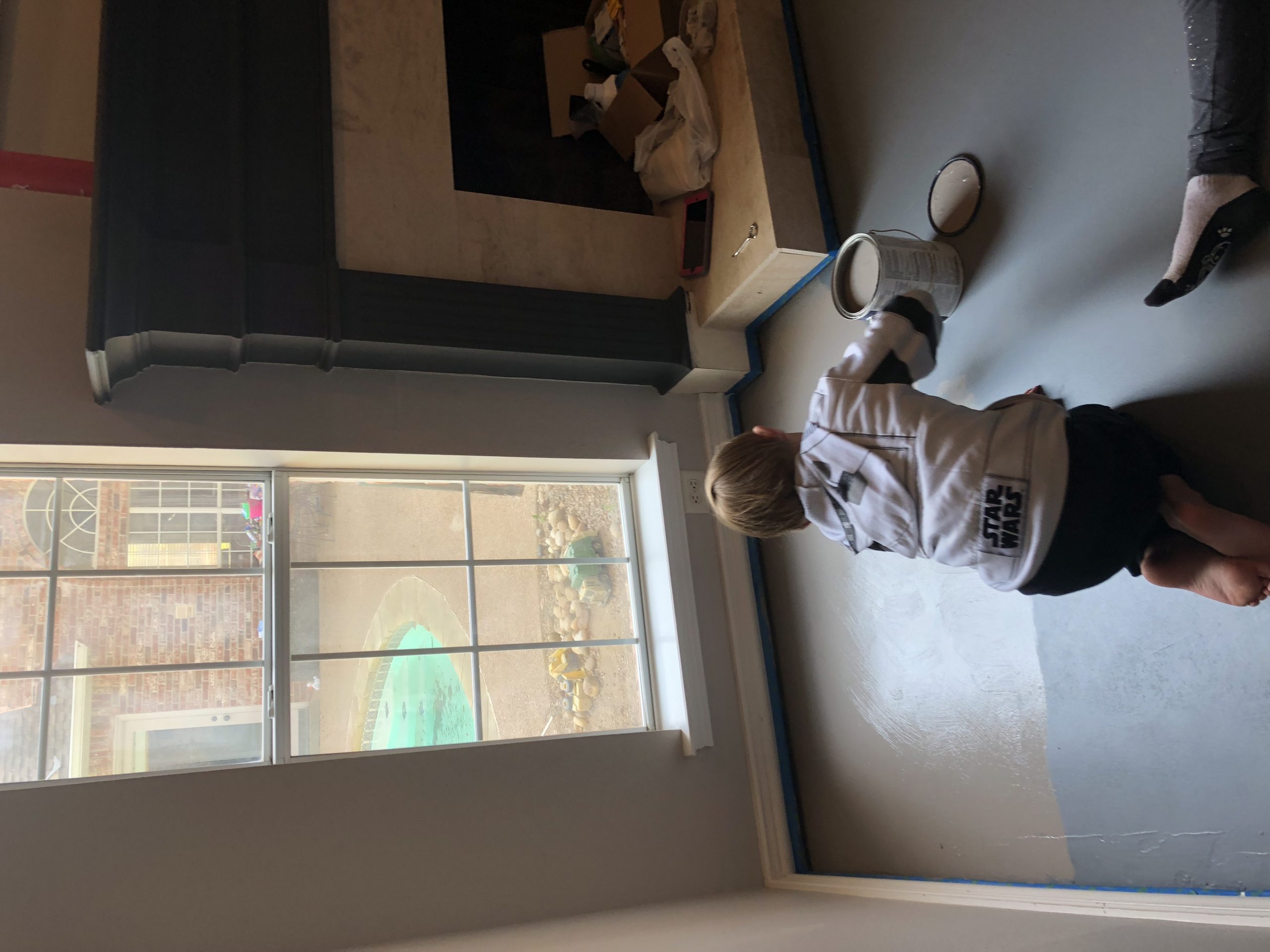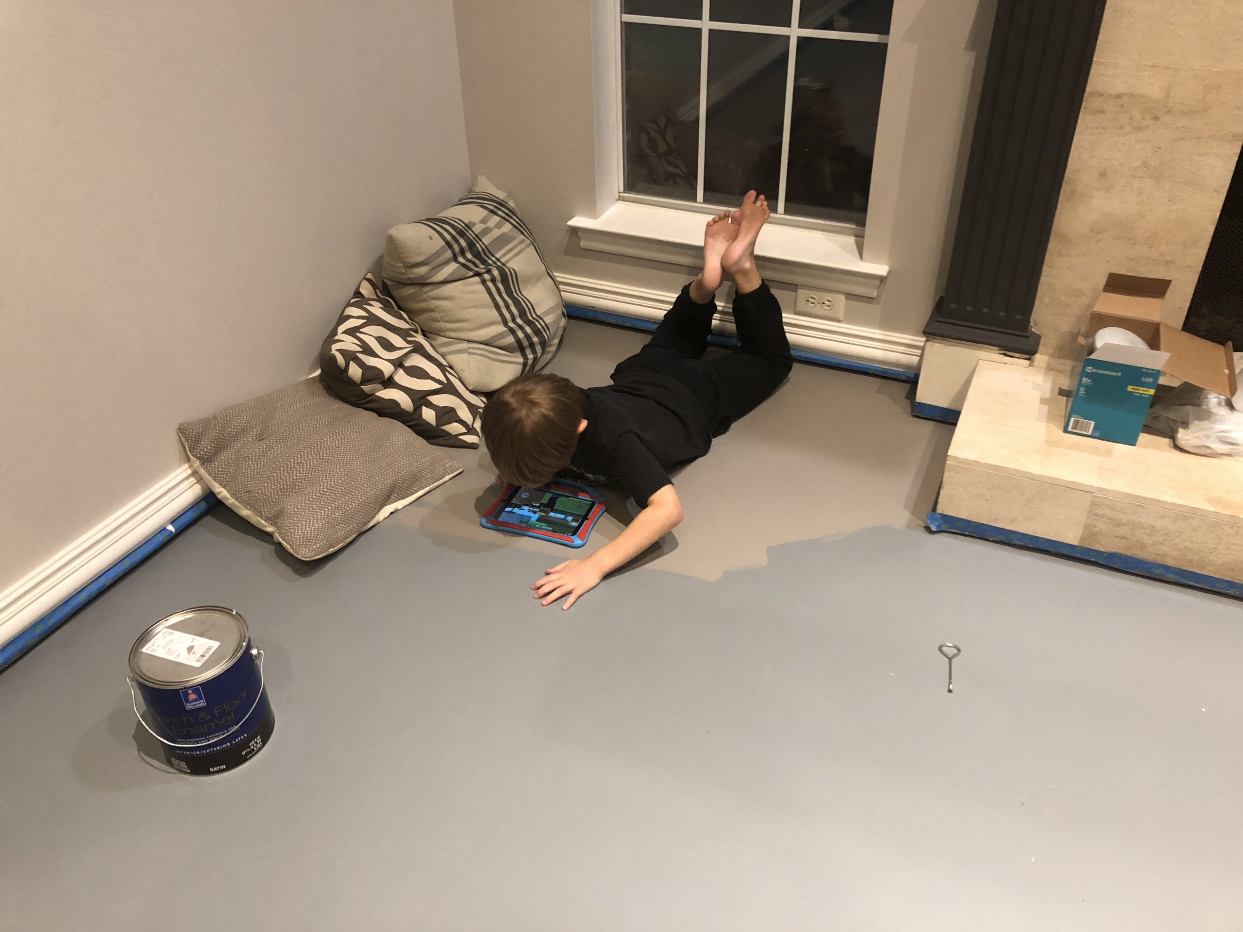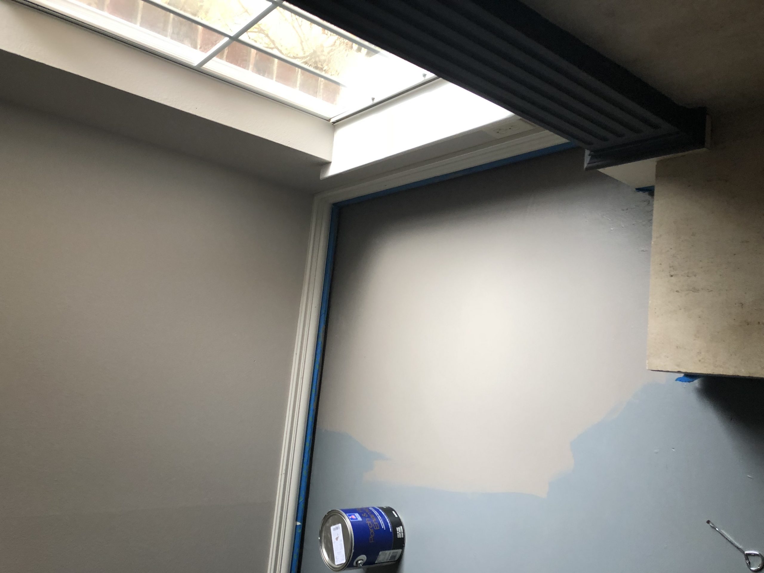 Next, we painted the floor. I bought Porch & Floor paint at Sherwin Williams. Since I wasn’t planning on painting the floor, I didn’t have a color picked out. So, the first color I picked didn’t really go with the wall color. It was a color I had used in the past, but it looked too blue. It was Online. The second time around I went with Dovetail. It was more of a greige, or warmer gray and looked better with my wall color. So, we ended up with two coats of paint on the floor. I might have been able to do two coats with one gallon if I hadn’t changed colors.
